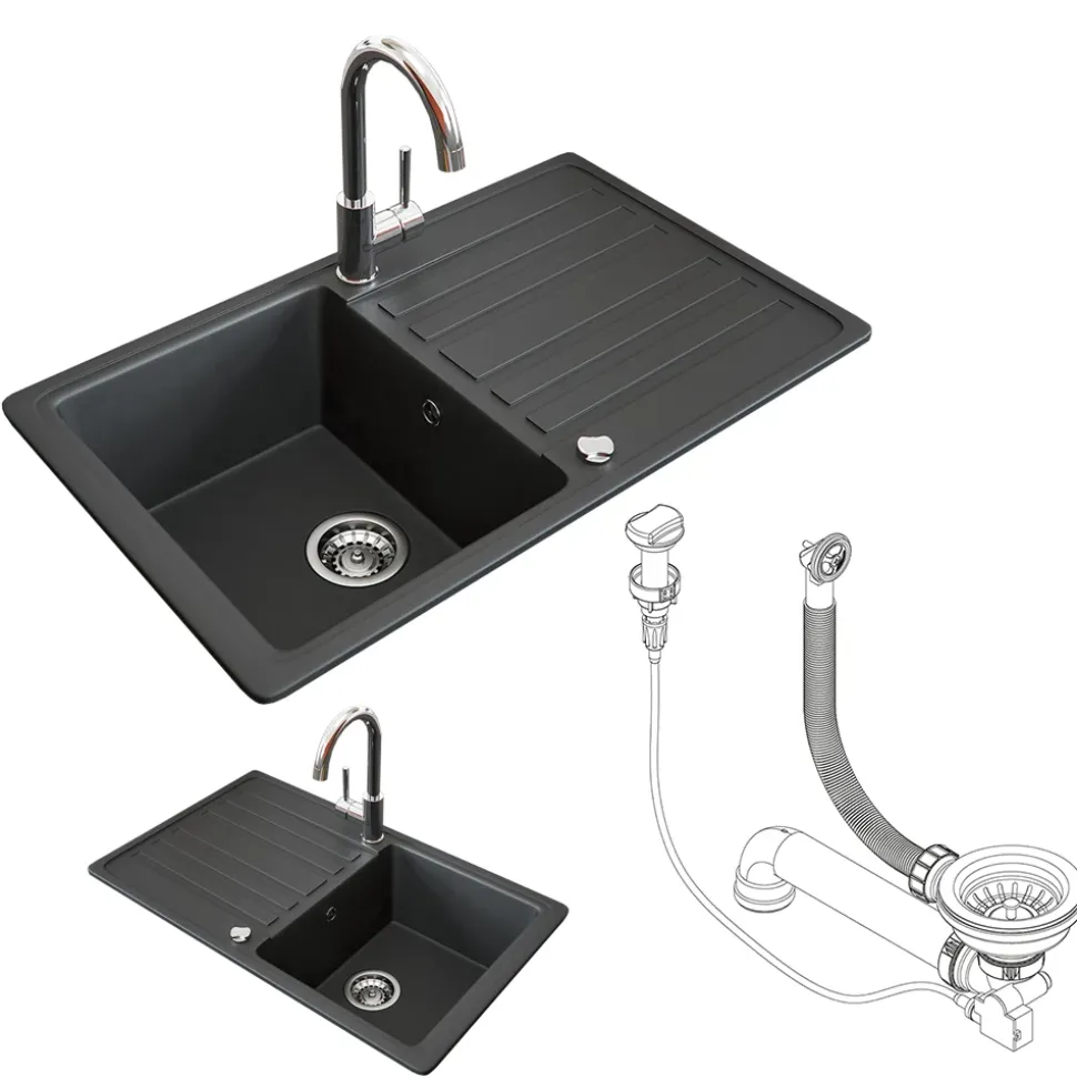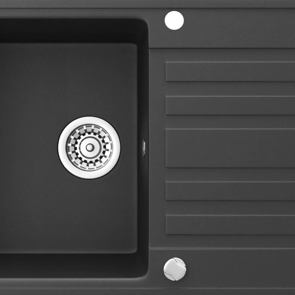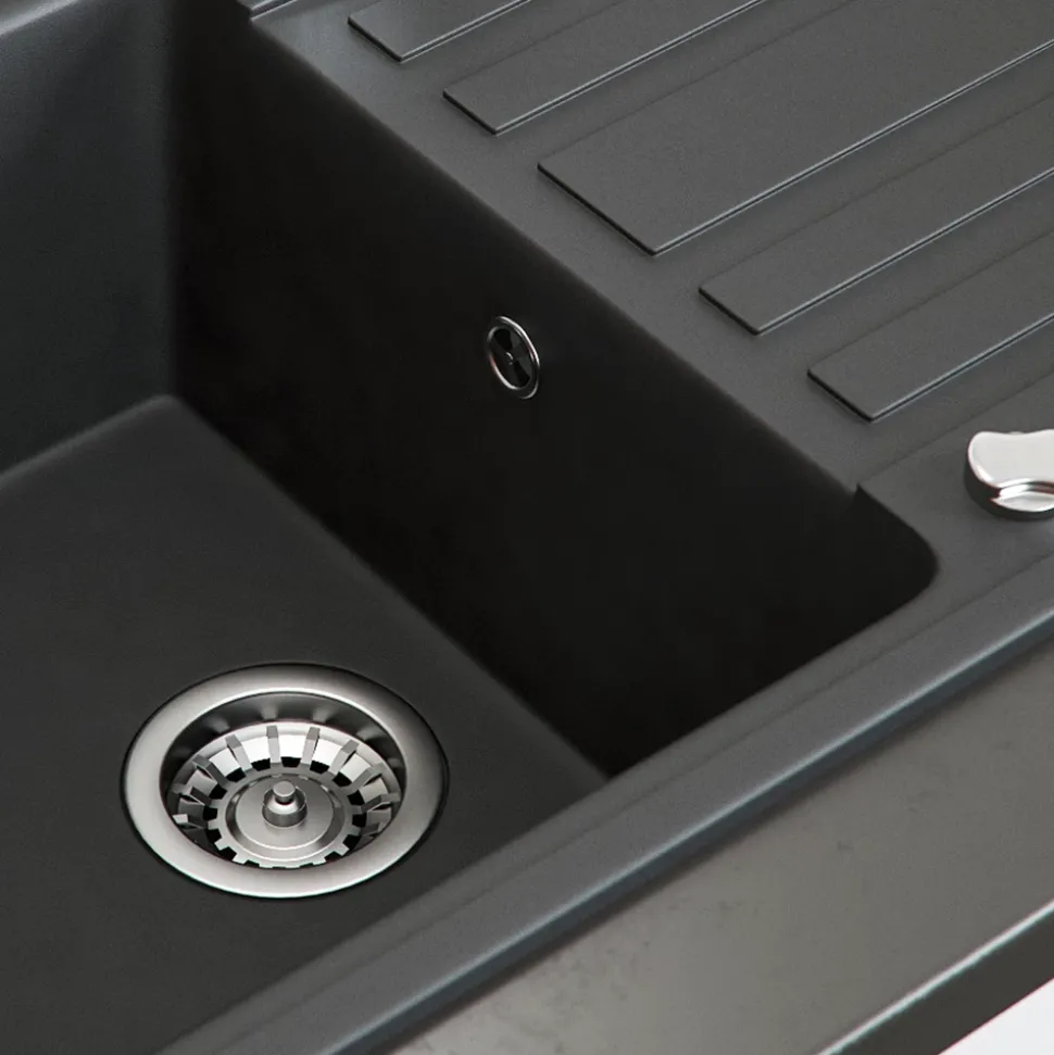 - Die Spüle aus Granit mit abtropfflügel ist widerstandsfähig gegen Chemikalien und stoßsicher, ideal für eine langlebige und robuste Küchenausstattung.