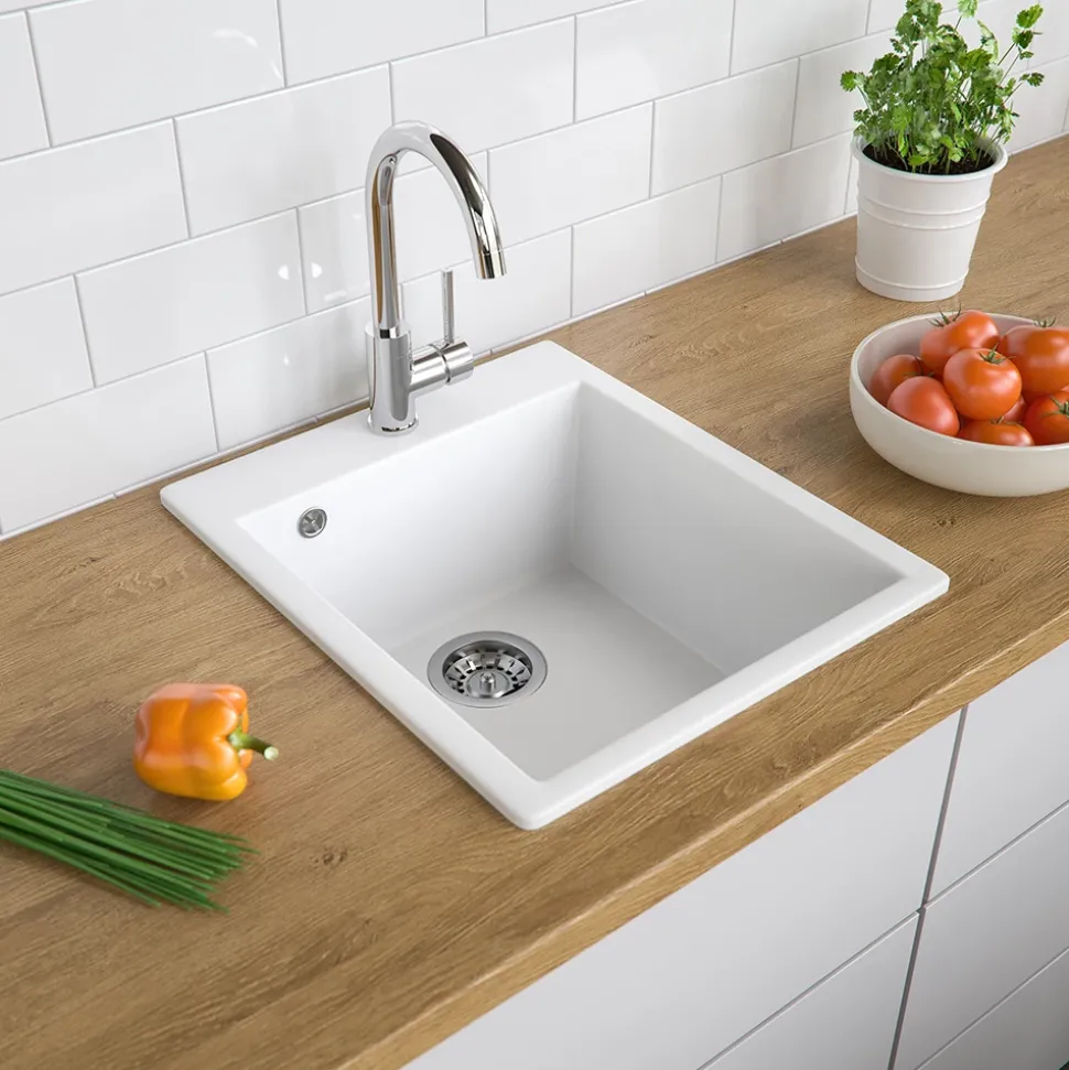 - Die Spüle aus Granit ist kompakt und widerstandsfähig gegen Chemikalien, sowie stoßsicher. Ideal für eine lange Nutzungsdauer in jeder Küche.