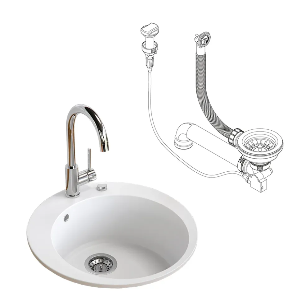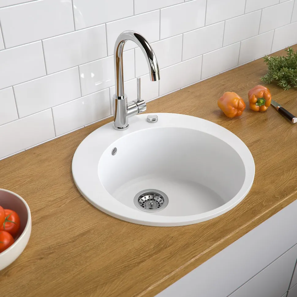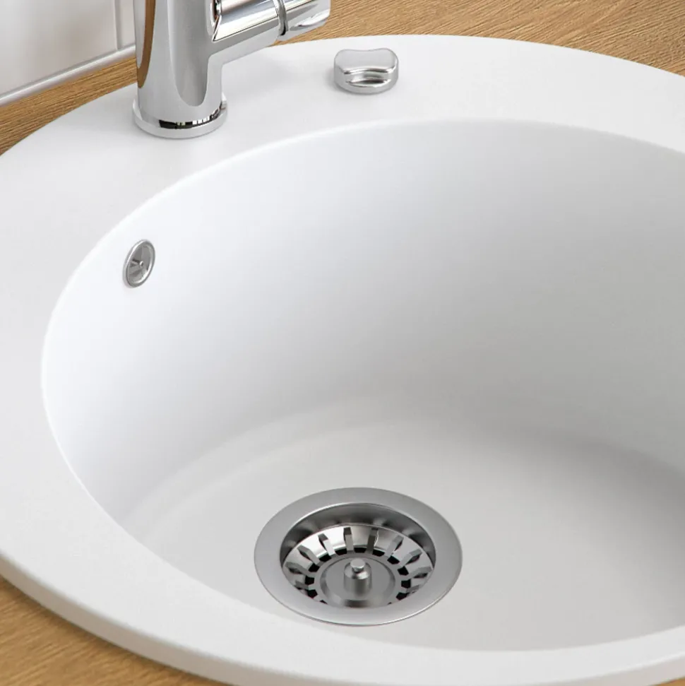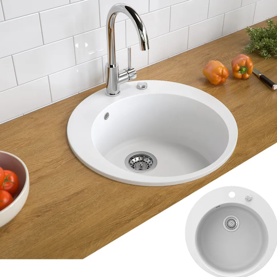 - Die runde Spüle aus Granit ist beständig gegen Chemikalien und kann Temperaturen von 15°C bis 95°C standhalten. Ideal für den täglichen Gebrauch in der Küche.