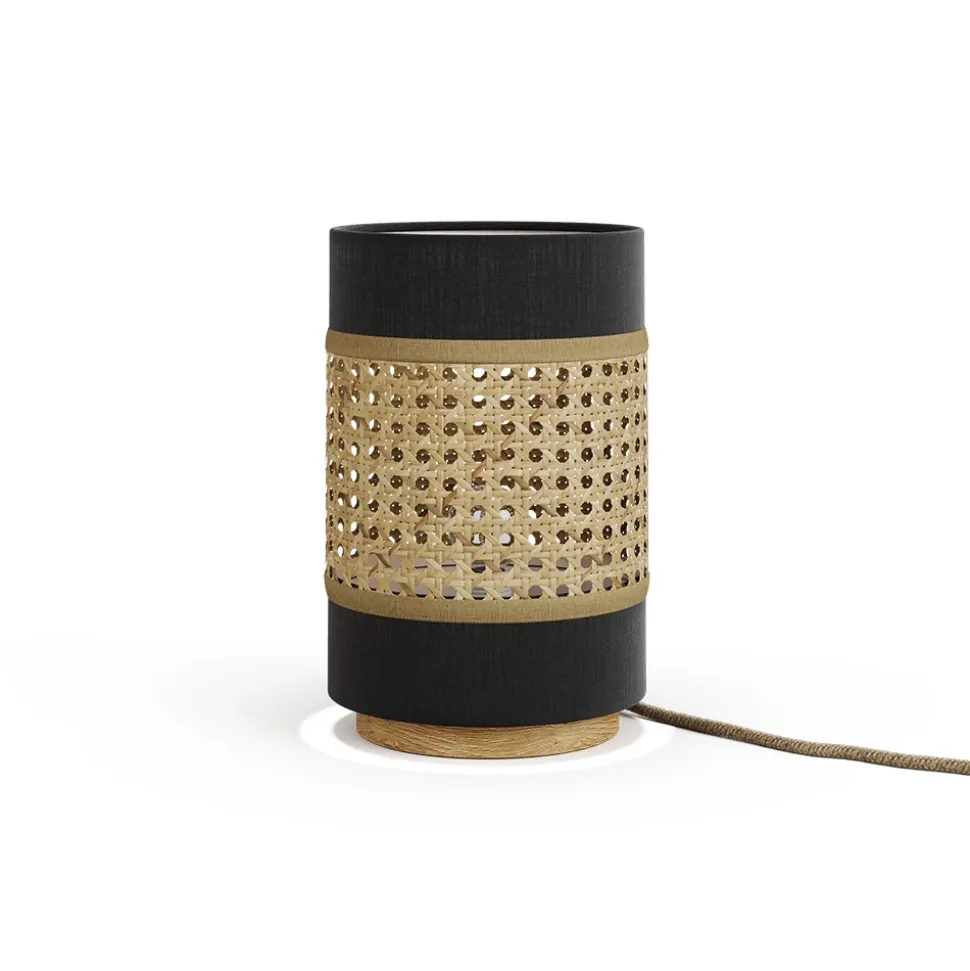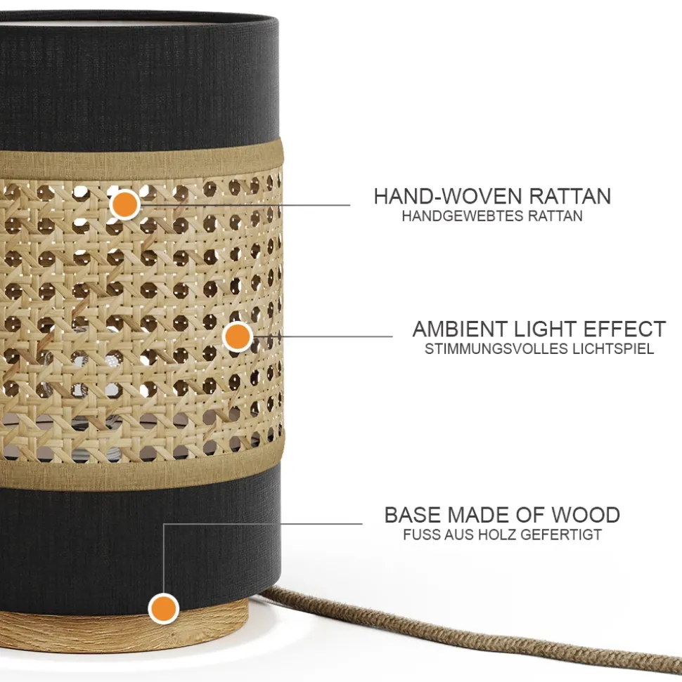 - MATERIAL: Die Tischlampe hat einen Holzfuß und besteht sonst aus pflegeleichtem Rattan und Metall.