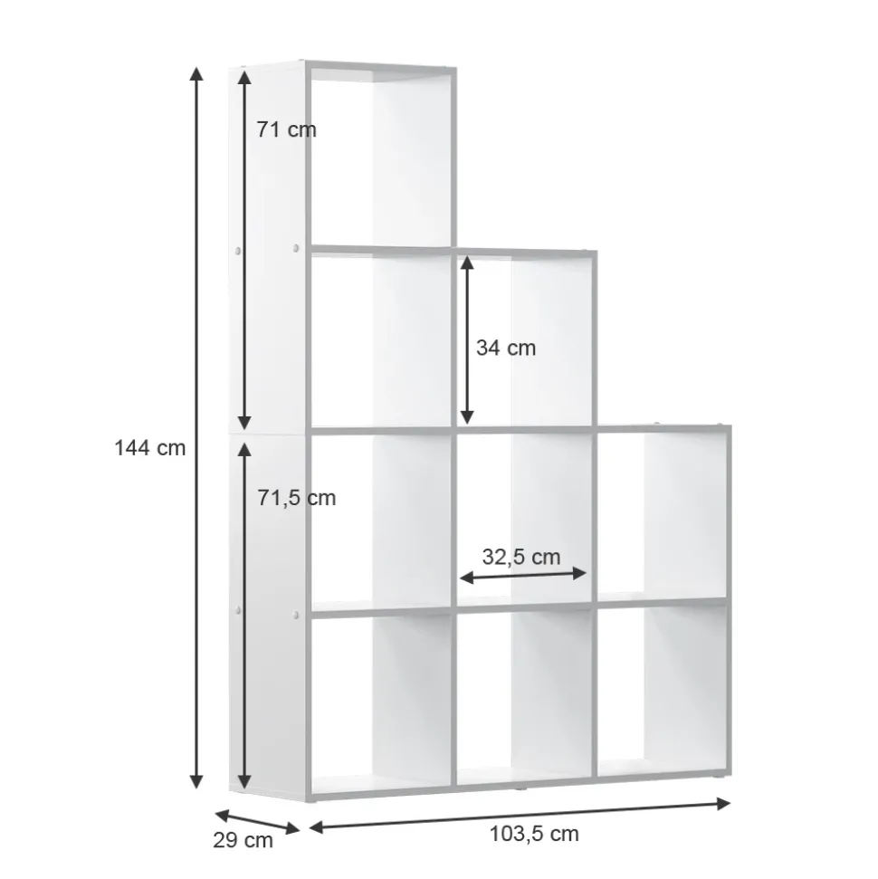 Mit schlichter Optik und modernem Design ist das Treppenregal ein ästhetisches Highlight in jedem Raum. Die großen, offenen Ablagefächer bieten ausreichend Platz für Bücher, Deko und mehr, um Ihren individuellen Stil zu präsentieren. Die pflegeleichte Oberfläche ermöglicht eine mühelose Reinigung und sorgt für langanhaltende Schönheit. Dank seiner stabilen Konstruktion bietet das Regal eine zuverlässige und solide Unterstützung für Ihre Gegenstände. Dieses Möbelstück gehört zu unserer Aramis-Raumtrenner-Serie.