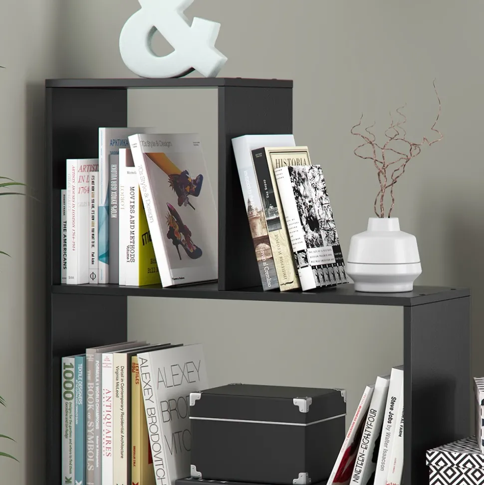 - Das stehende Bücherregal bietet Platz für Bücher und Dekoration mit 4 offenen Ablagen in leiterförmigem Design und kastenförmigen Regalen von 30×30.