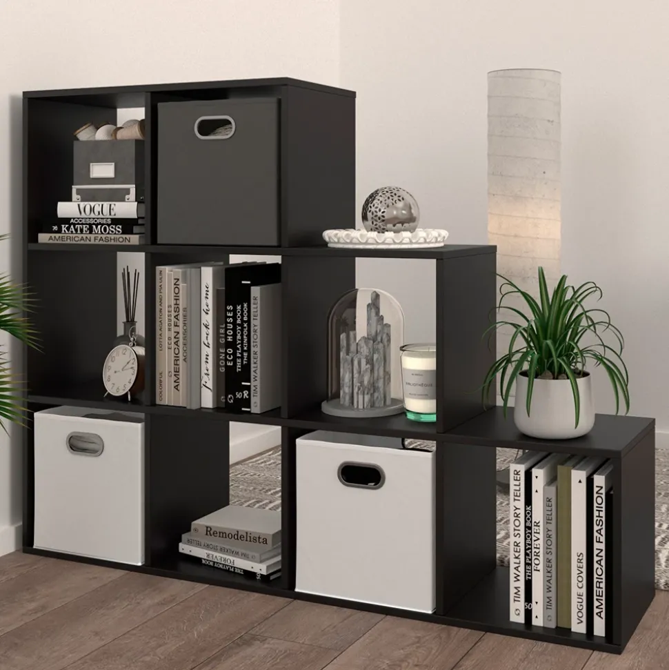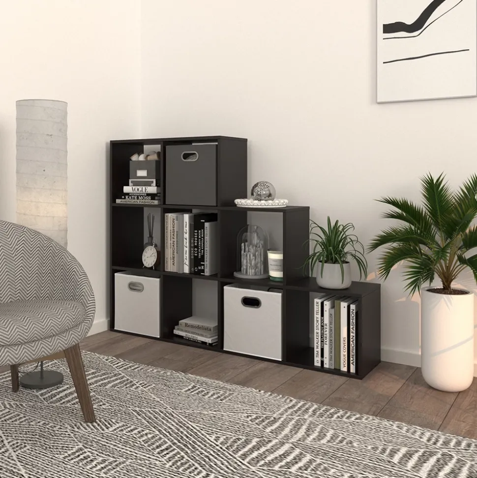 - Das stehende Bücherregal bietet neun offene Ablageflächen in leiterförmigem Design und Kastenregale mit 30×30 cm Größe.