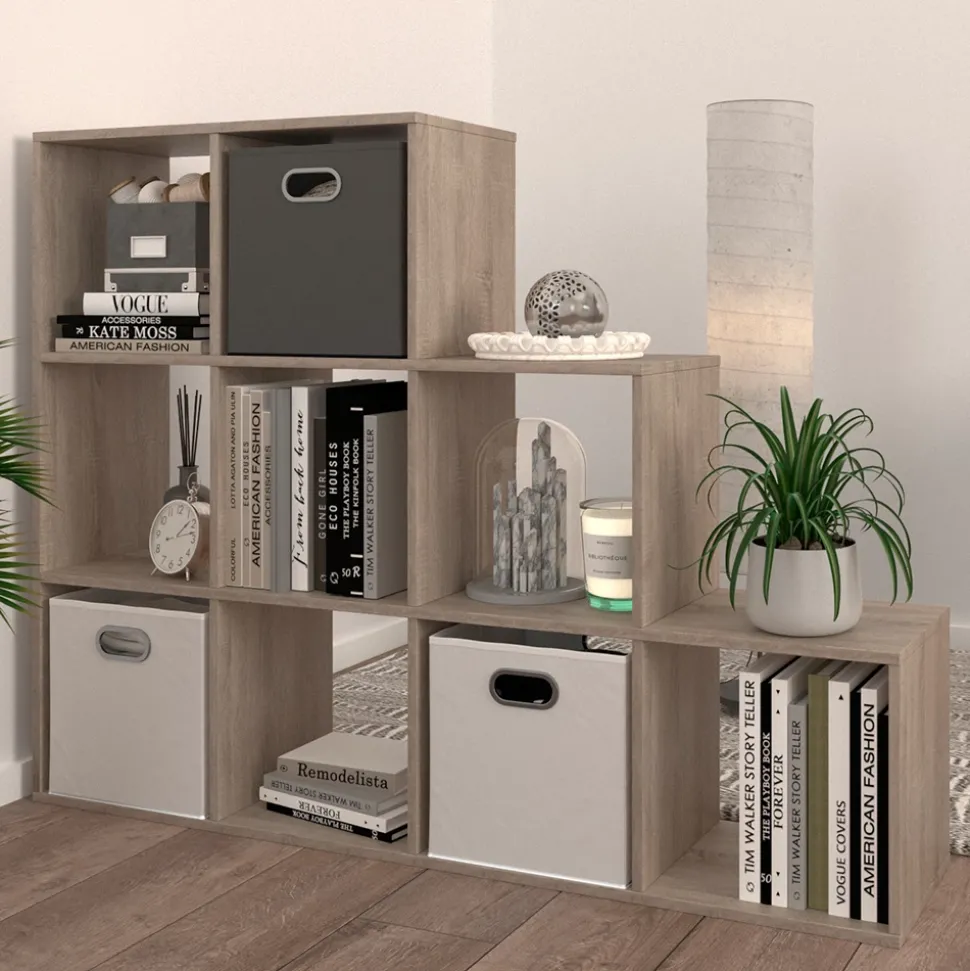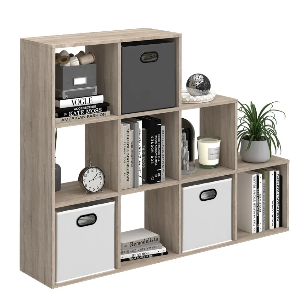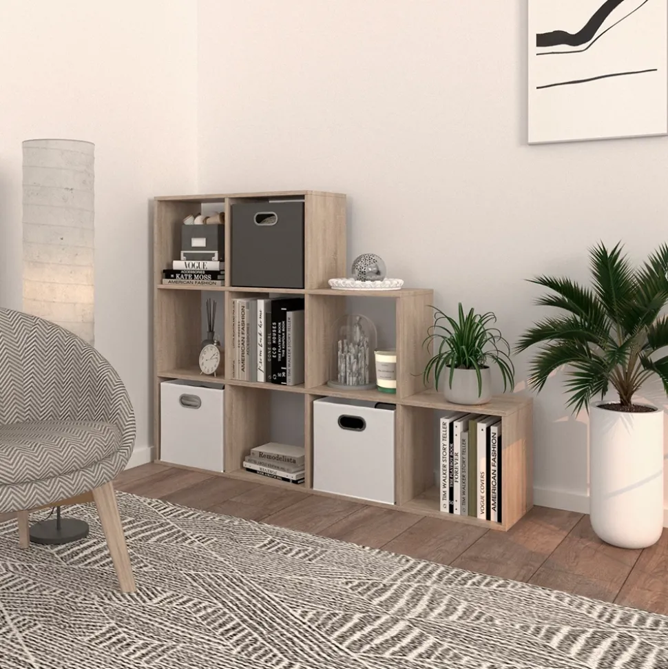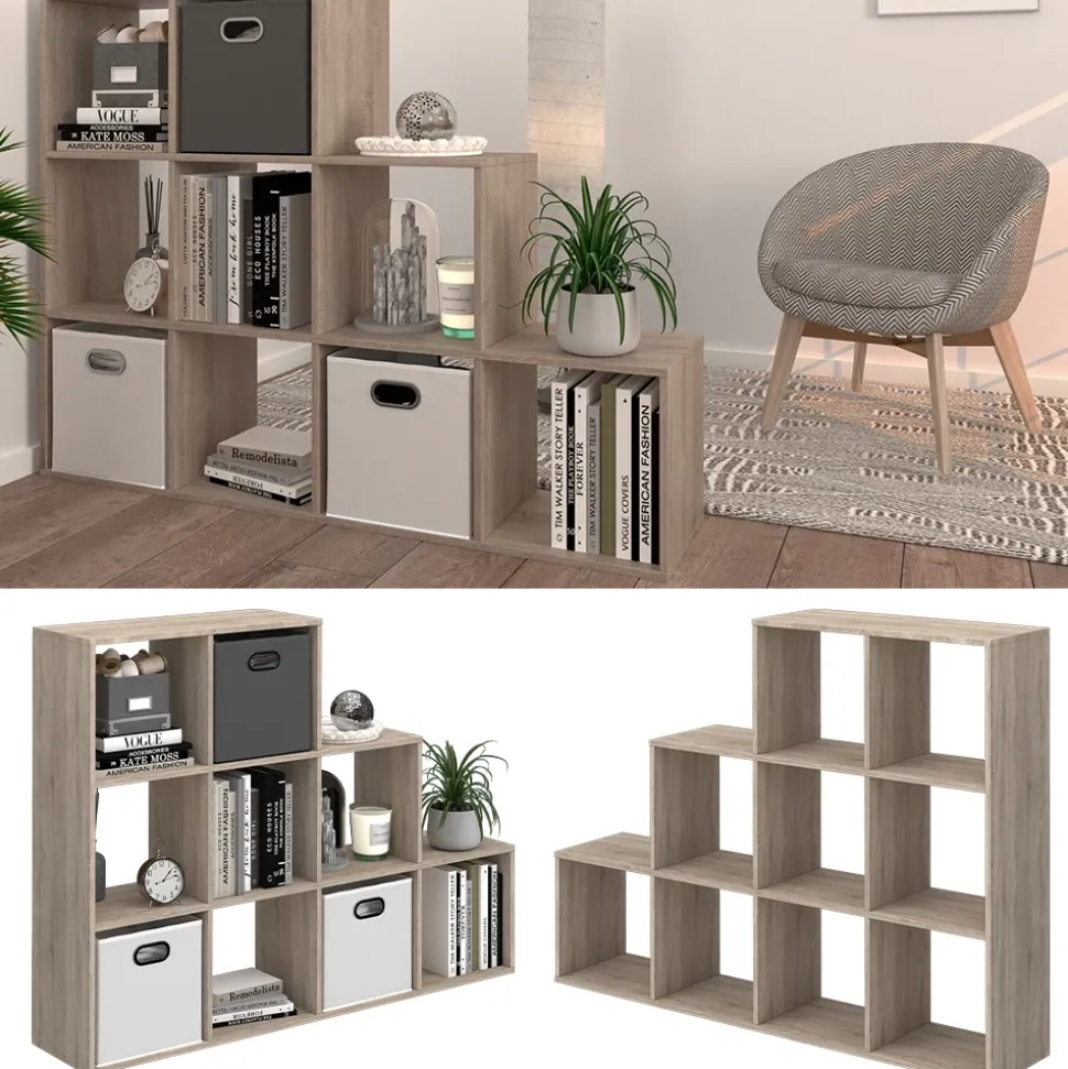 - Das stehende Bücherregal bietet neun offene Ablageflächen in leiterförmigem Design und Kastenregale mit 30×30 cm Größe.