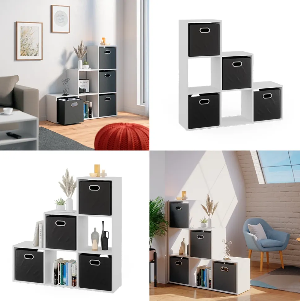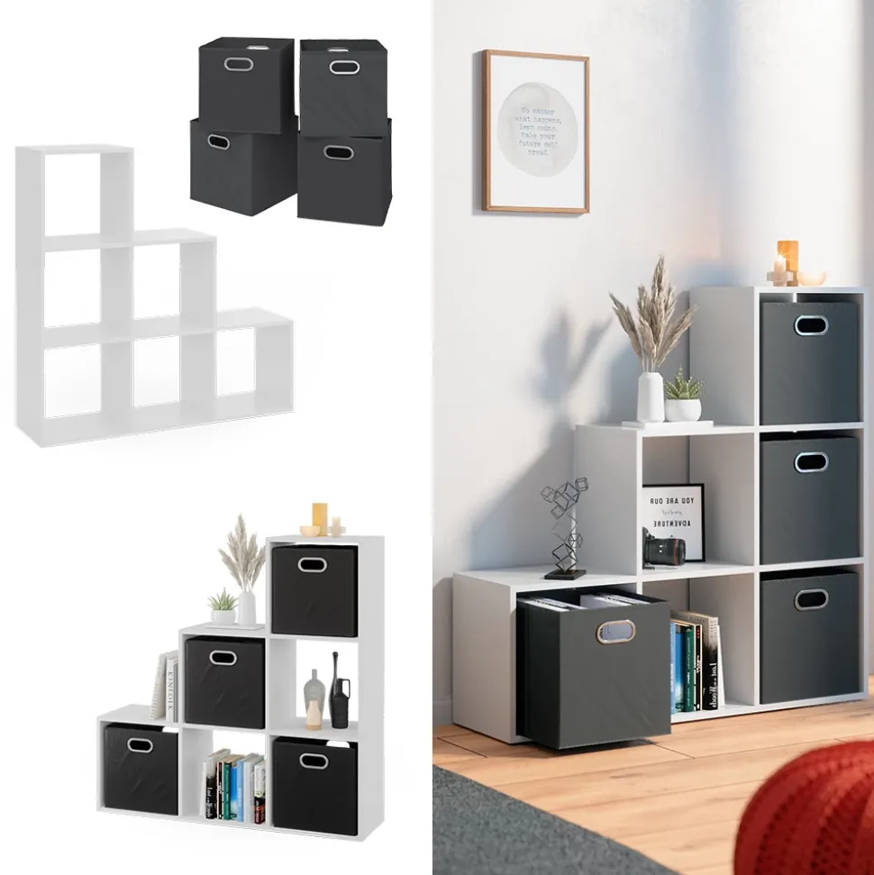- LIEFERUMFANG: Treppenregal, 4x Faltbox, Montageanleitung, Montagematerial.