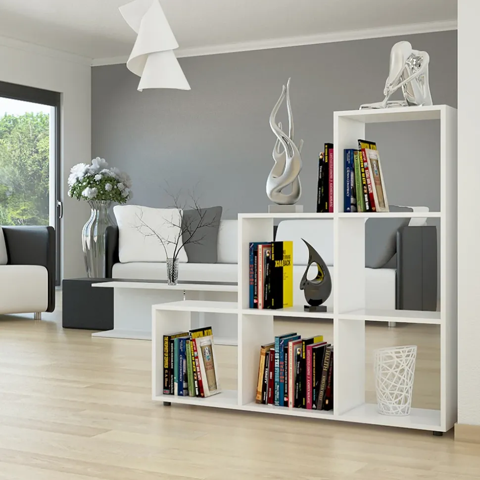 - Das stehende Bücherregal bietet mit 6 offenen Ablagen und kastenförmigen Regalen ausreichend Platz für Bücher und Dekorationen jeder Art.