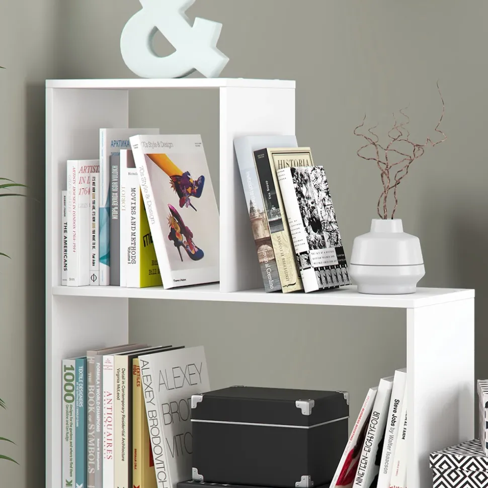 - Das stehende Bücherregal verfügt über 4 offene Einlegeböden, welche leiterförmig angeordnet sind. Die kastenförmigen Regale haben eine Größe von 30×30.