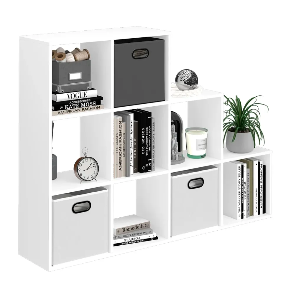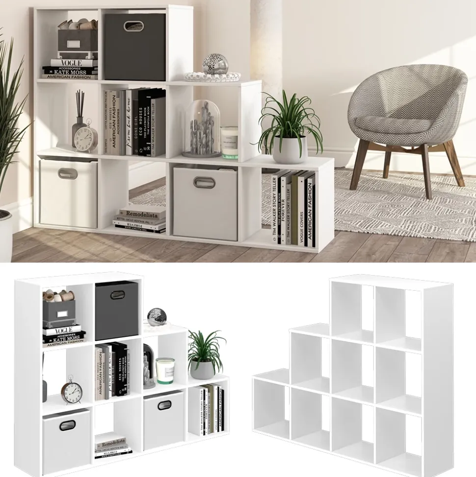 - Das stehende Bücherregal bietet neun offene Ablageflächen in leiterförmigem Design und Kastenregale mit 30×30 cm Größe.