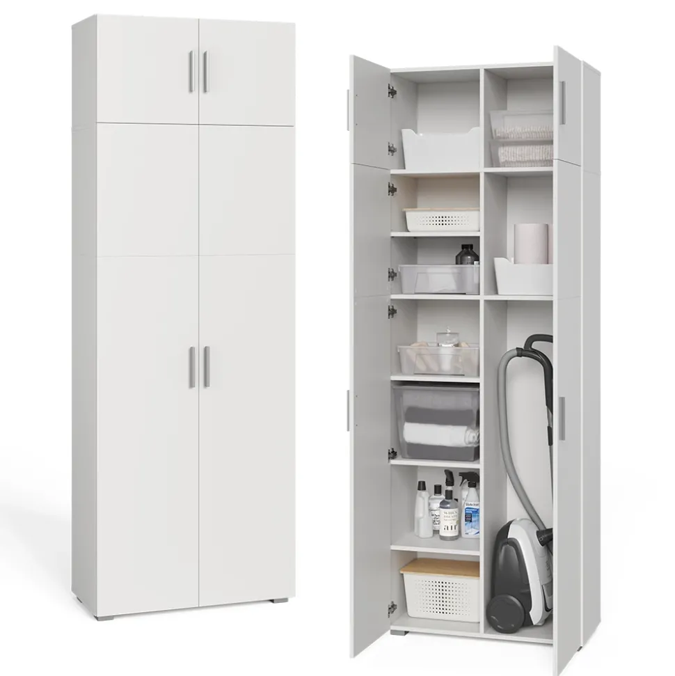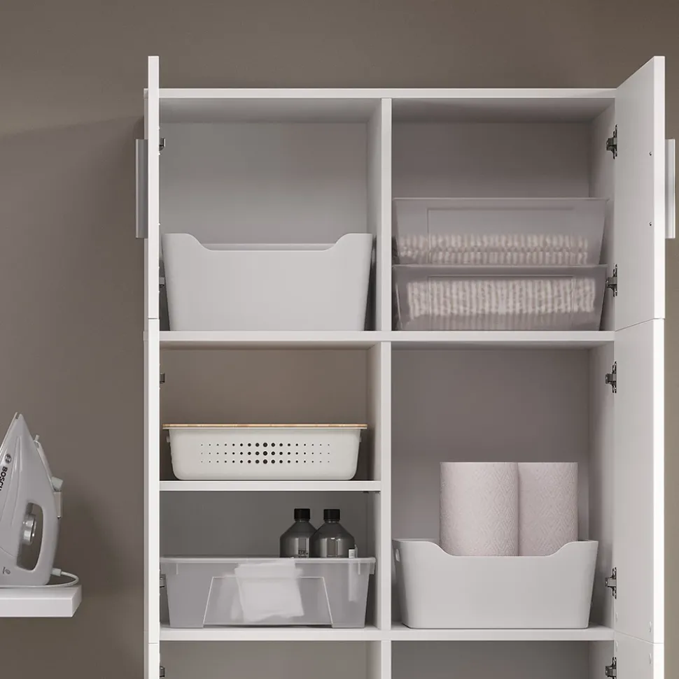 - Der Multifunktionsschrank bietet viel Stauraum mit zwei hohen Flügeltüren für Büro oder Zuhause. Vielseitig einsetzbar und praktisch für die Organisation.