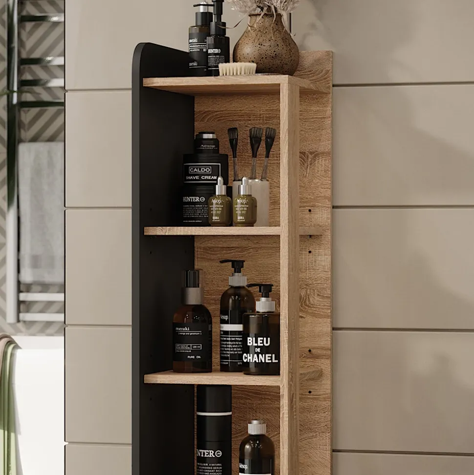 Der Badregal Karen ist die perfekte Lösung, um Ordnung und Stil in Ihr Badezimmer zu bringen. Mit seinen 4 geräumigen Fächern bietet er ausreichend Platz für all Ihre Badezimmerutensilien, von Handtüchern bis hin zu Kosmetika. Dieser Badschrank kann perfekt mit anderen Möbeln kombiniert werden und sorgt so für ein einheitliches und harmonisches Erscheinungsbild in Ihrem Badezimmer. Gönnen Sie sich mit dem Midischrank Karen ein Stück Luxus für Ihr Zuhause und genießen Sie die einfache Organisation Ihrer persönlichen Pflegeprodukte.