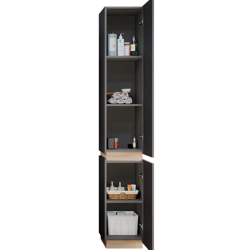 - Erleben Sie den stilvollen Look des schmalen Badezimmerschranks „Gloria“. Universell für jedes Haus geeignet, bietet er optimales Design und Freude an der Benutzung.