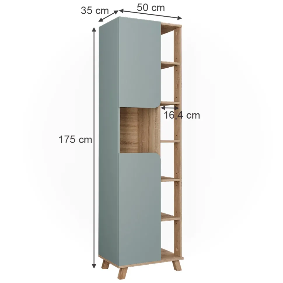 - MAßE: Der Hochschrank, mit 2 Türen, hat eine Tiefe von 35 cm, eine Breite von 50 cm und eine Höhe von 175 cm.