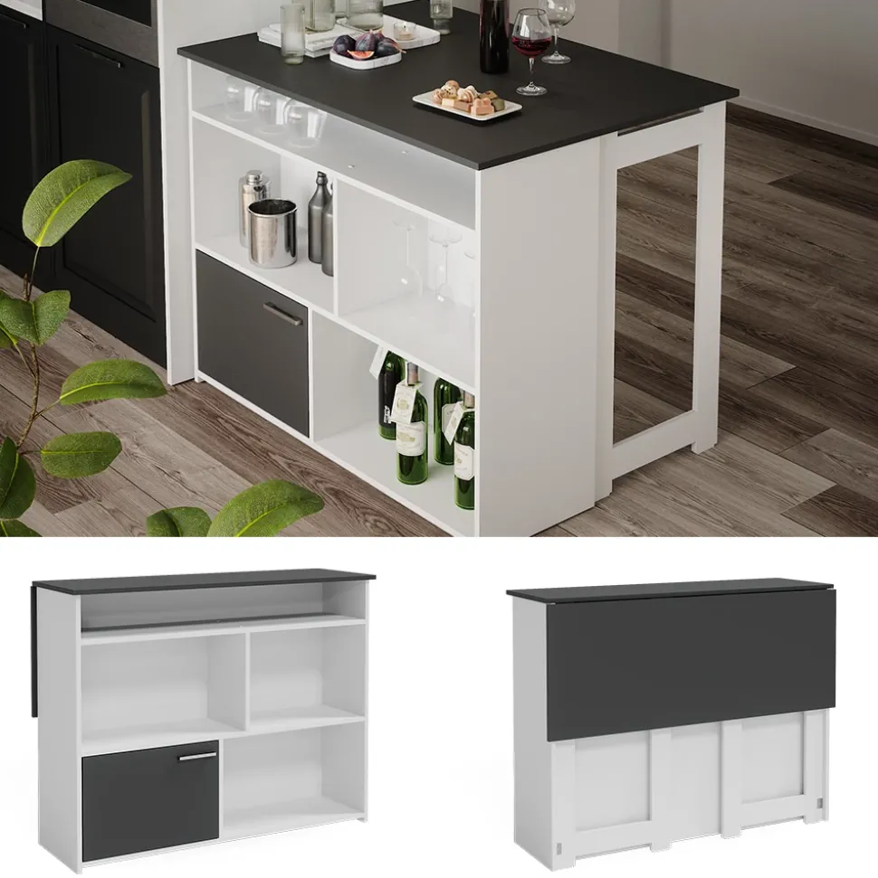 - Dieser Bartresen für das Esszimmer verfügt über 4 offene Fächer und 1 Tür, damit alles griffbereit ist. Die Tischplatte und das Beingestell sind gleichermaßen klappbar.