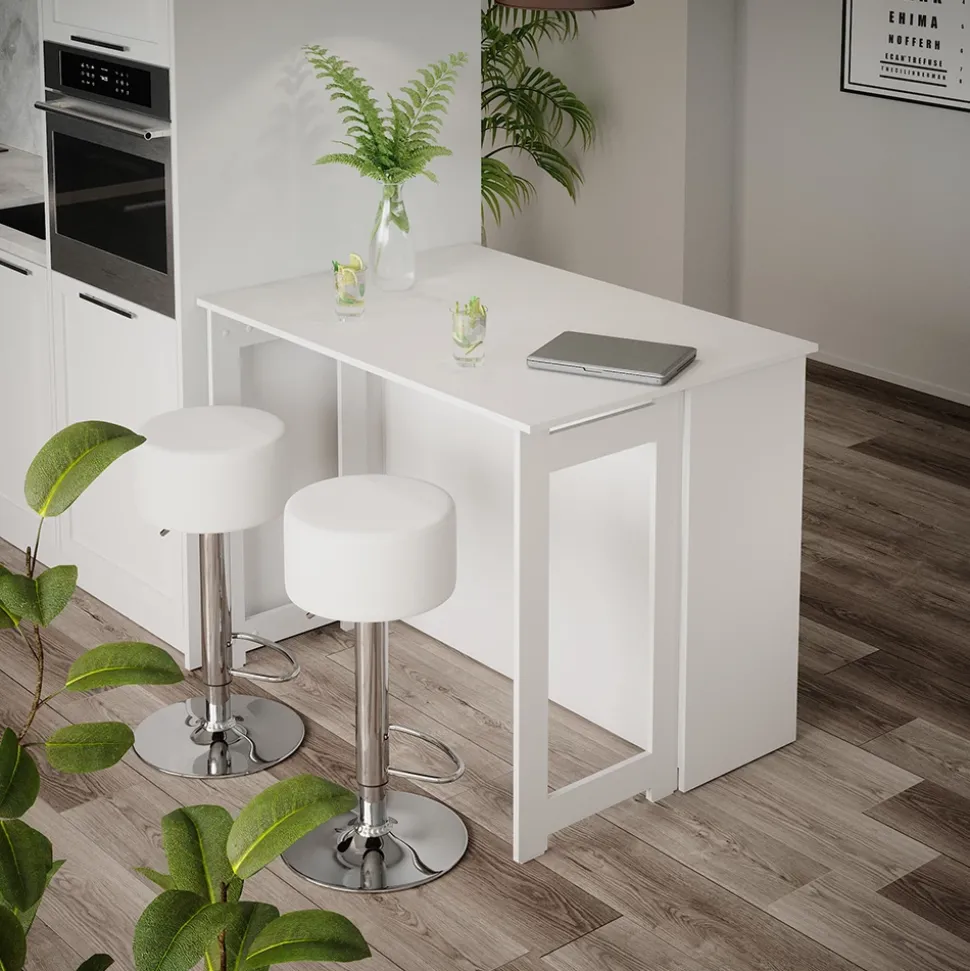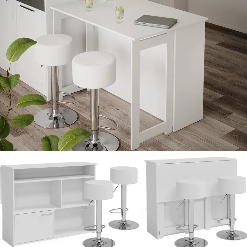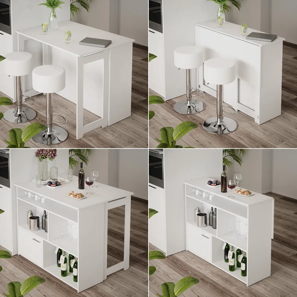 - Dieser Bartresen für das Esszimmer verfügt über 4 offene Einlegeböden und 1 Tür, damit alles griffbereit ist. Die klappbare Tischplatte und Beine sorgen für platzsparendes Verstauen.