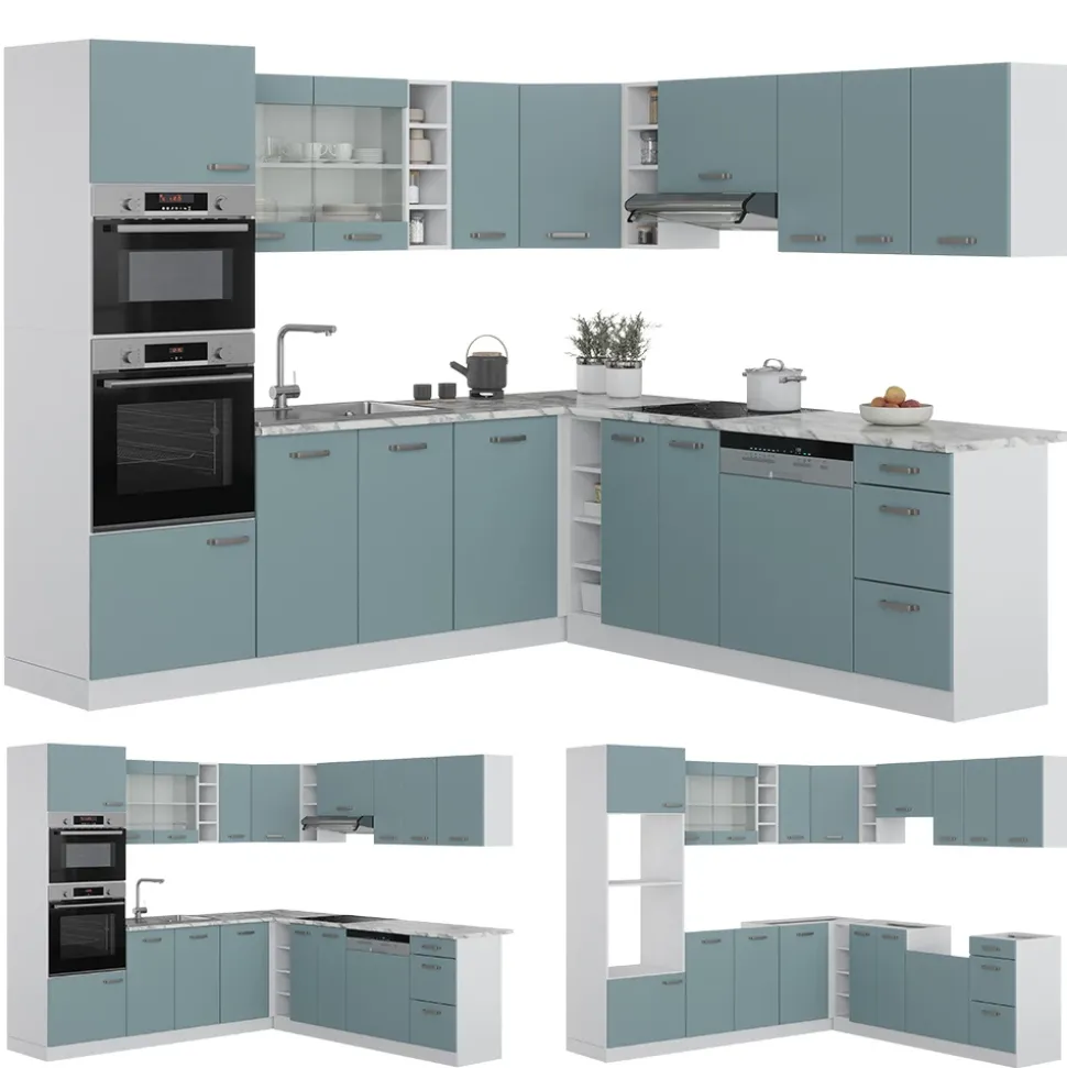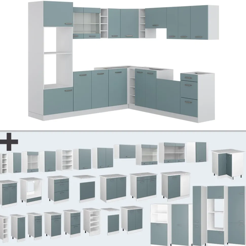 Die Eckküche aus der R-Line – Serie ist die perfekte Ergänzung für Ihr Zuhause. Mit ihrer L-Form und der flexiblen Konfiguration passt die Küche in jede Ecke und bietet genügend Platz zum Kochen, Backen und Genießen. Ob Sie ein Familienessen planen oder Gäste empfangen möchten: die Winkelküche lässt keine Wünsche offen. Die höhenverstellbaren Füße garantieren eine bequeme Arbeitshöhe und die Module können nach Belieben umgestellt werden. Diese Einbauküche ist das Komplettpaket für Ihre neue Küche.