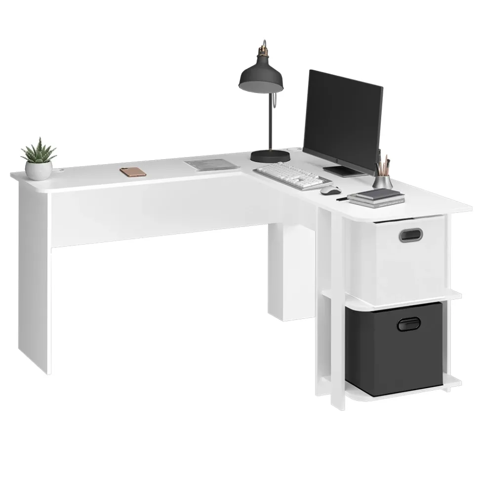 - Winkelschreibtisch bietet eine geräumige Arbeitsfläche, offene Regale und spart Platz.