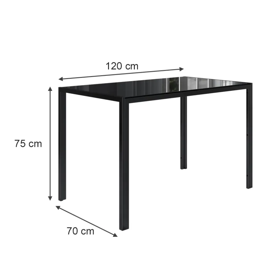 - PRODUKTMAßE: Dieser Esstisch hat die Abmessungen 120 x 70 x 75 cm (BxHxT) und wiegt 21,5 kg. Die Glasplatte misst 8 mm in der Stärke, während die Tischbeine 30 x 0,8 mm messen.