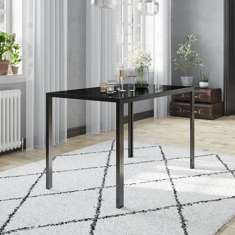 - MATERIAL: Die Tischbeine bestehen aus pulverbeschichtetem Metall, während die Glasplatte aus gehärtetem Glas gefertigt ist. Pflegen Sie sie leicht mit einem feuchten Tuch für dauerhafte Eleganz