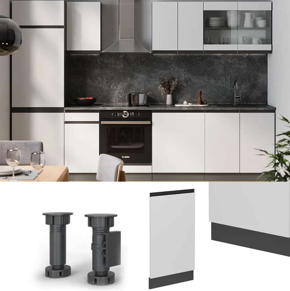 - Die Geschirrspüler-Fronttür passt perfekt zu allen R-Line Küchen und bietet flexible Anpassungsmöglichkeiten – ideal für vollintegrierte Geschirrspüler.