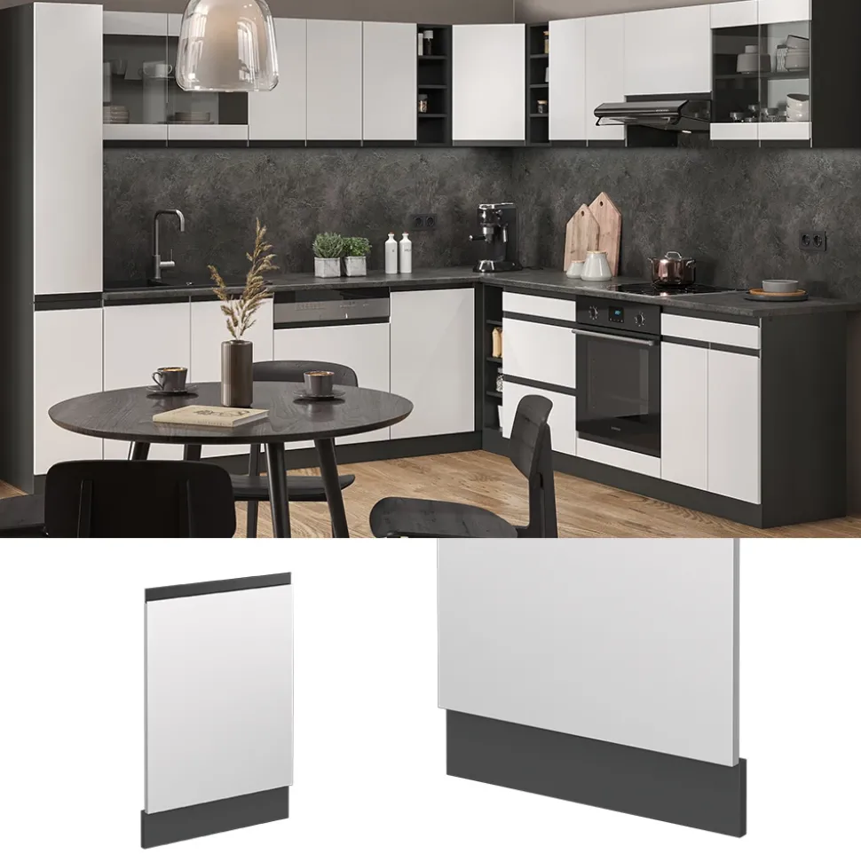 - Die Geschirrspüler-Fronttür passt perfekt zu allen R-Line Küchen und bietet flexible Anpassungsmöglichkeiten – ideal für vollintegrierte Geschirrspüler.