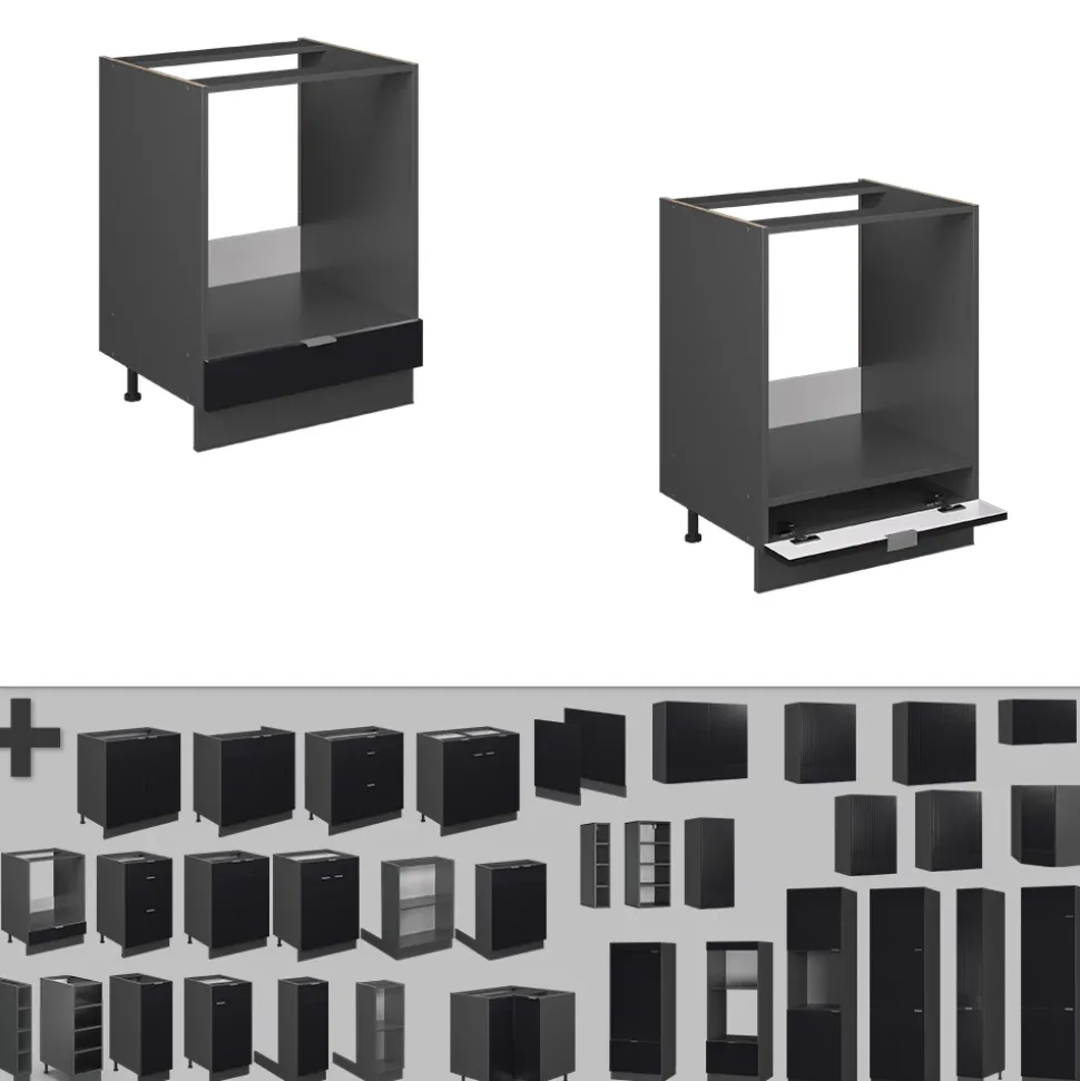 - Der Herdschrank bietet die Möglichkeit, zusätzliche Module hinzuzufügen und nach Belieben umzustellen. Die MDF-Fronten verleihen dem Schrank eine hochwertige Optik.