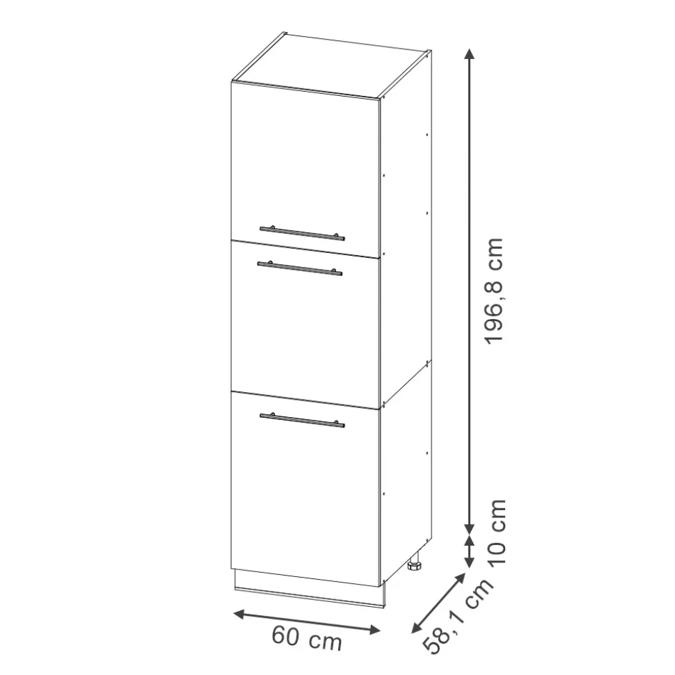 - MAßE: Der Küchenschrank für den Einbauherd hat eine Breite von 60 cm, eine Höhe von 206,8 cm und eine Tiefe von 58 cm. Alle detaillierten Größen sind auf den Fotos angegeben.