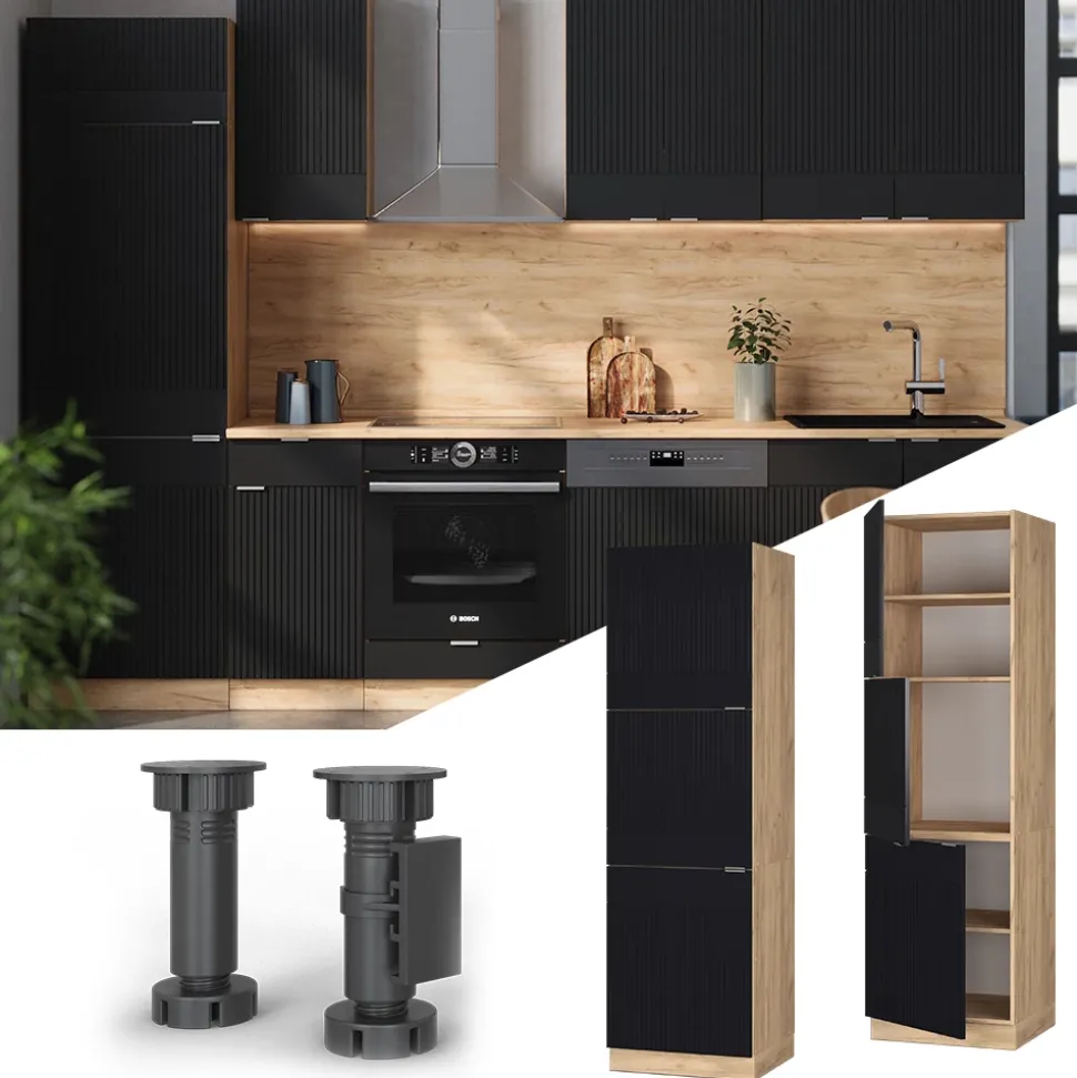 - Der Herdschrank bietet zusätzliche Module, die nach Belieben umgestellt werden können. Die MDF-Fronten sorgen für ein modernes und ansprechendes Design.