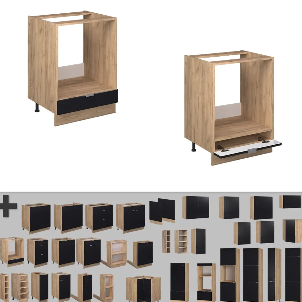 - Der Herdschrank bietet die Möglichkeit, zusätzliche Module zu beziehen und nach Belieben umzustellen. Die MDF-Fronten sorgen für ein ansprechendes Design und hohe Qualität.