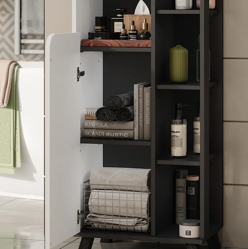 - Für alle, die nach einer platzsparenden Lösung suchen, ist „Karen“ der ideale schmale Badezimmerschrank. Sein optimales Design passt in jede Wohnung und sorgt für stilvolle Ordnung