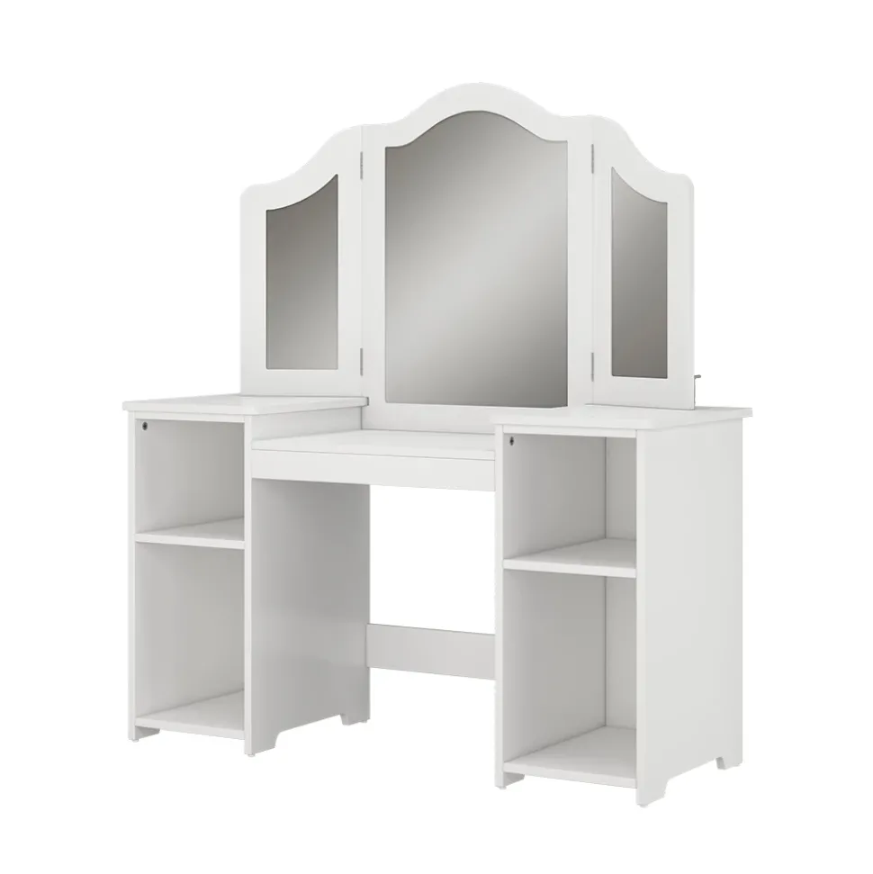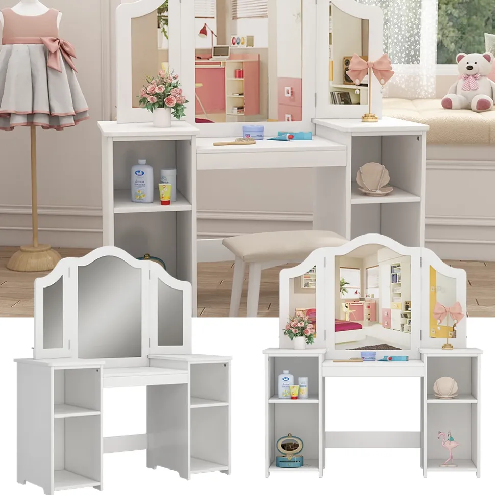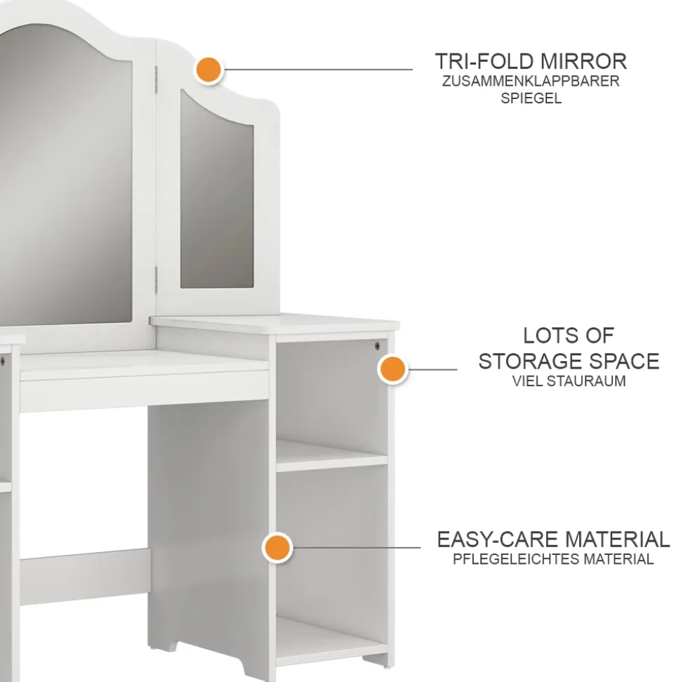 - Der Kosmetiktisch für Mädchen verfügt über einklappbare Seitenteile am Spiegel und passt perfekt in jedes Zimmer, um ein schönes Schminkerlebnis zu bieten. Ideal für junge Beauty-Liebhaberinnen!