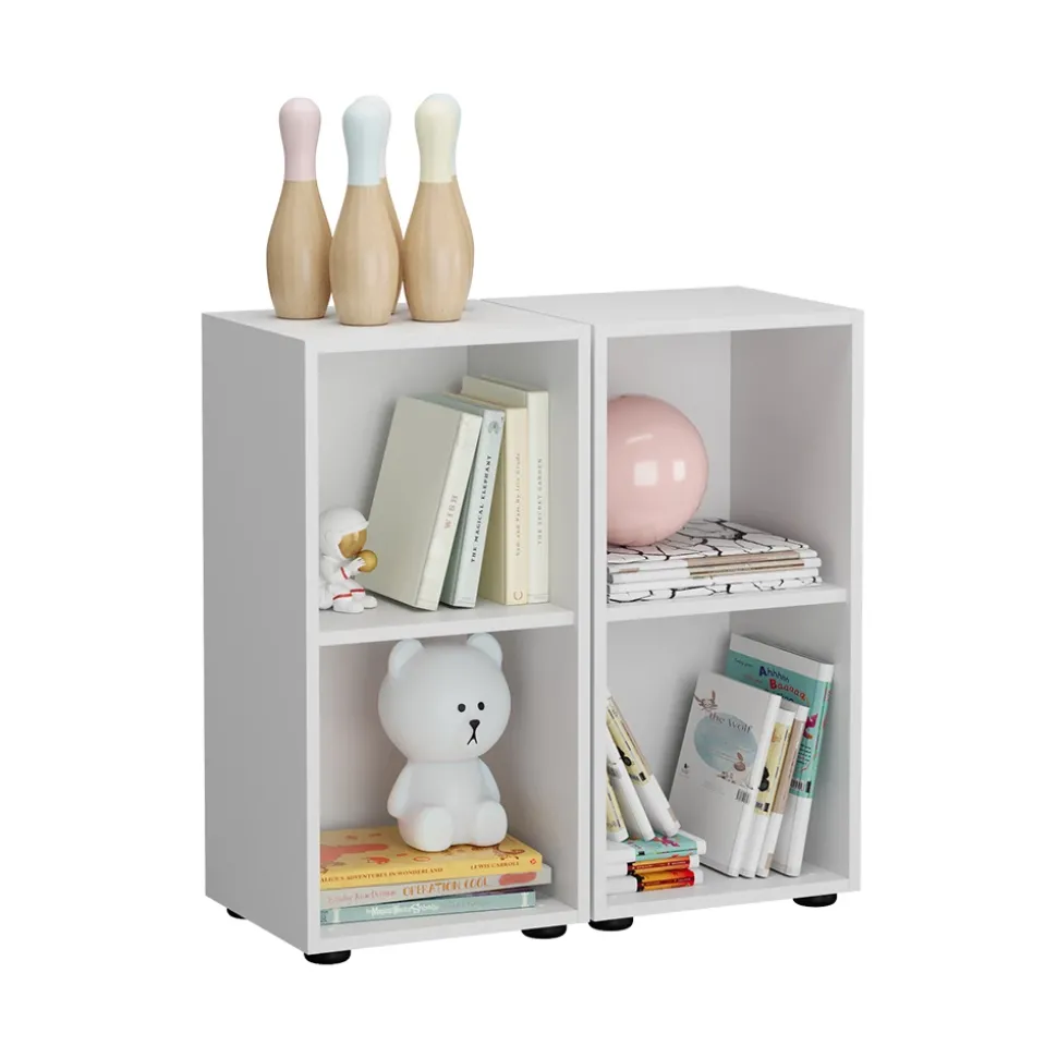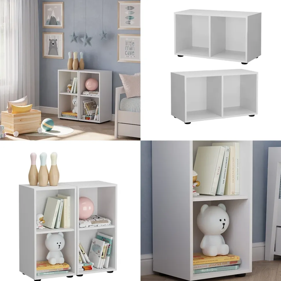 - Das Spielzeugregal für Faltboxen verfügt über 2 geräumige Fächer für Spielzeug oder Bücher. Es ist robust, weiß und perfekt für die Aufbewahrung mit Faltboxen geeignet.