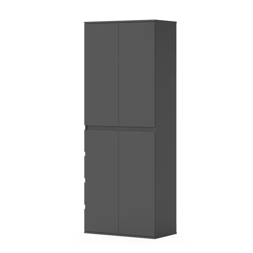 - MAßE: Der Mehrzweckschrank, mit 4 Türen, hat die folgenden Maße: Tiefe: 40 cm, Breite: 74 cm, Höhe: 191,5 cm. Die detaillierten Größen sind auf den Fotos angegeben.
