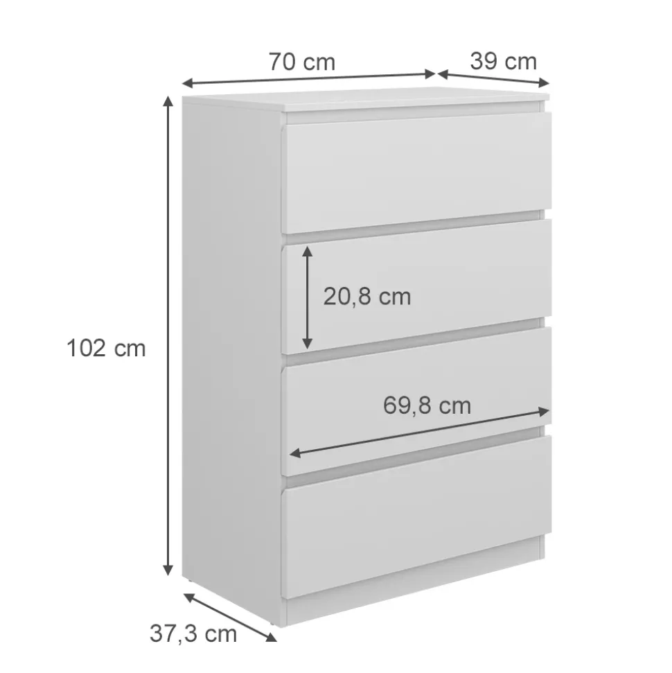 - MATERIAL: Die Kommode besteht aus pflegeleichter Spanplatte, 16 mm.