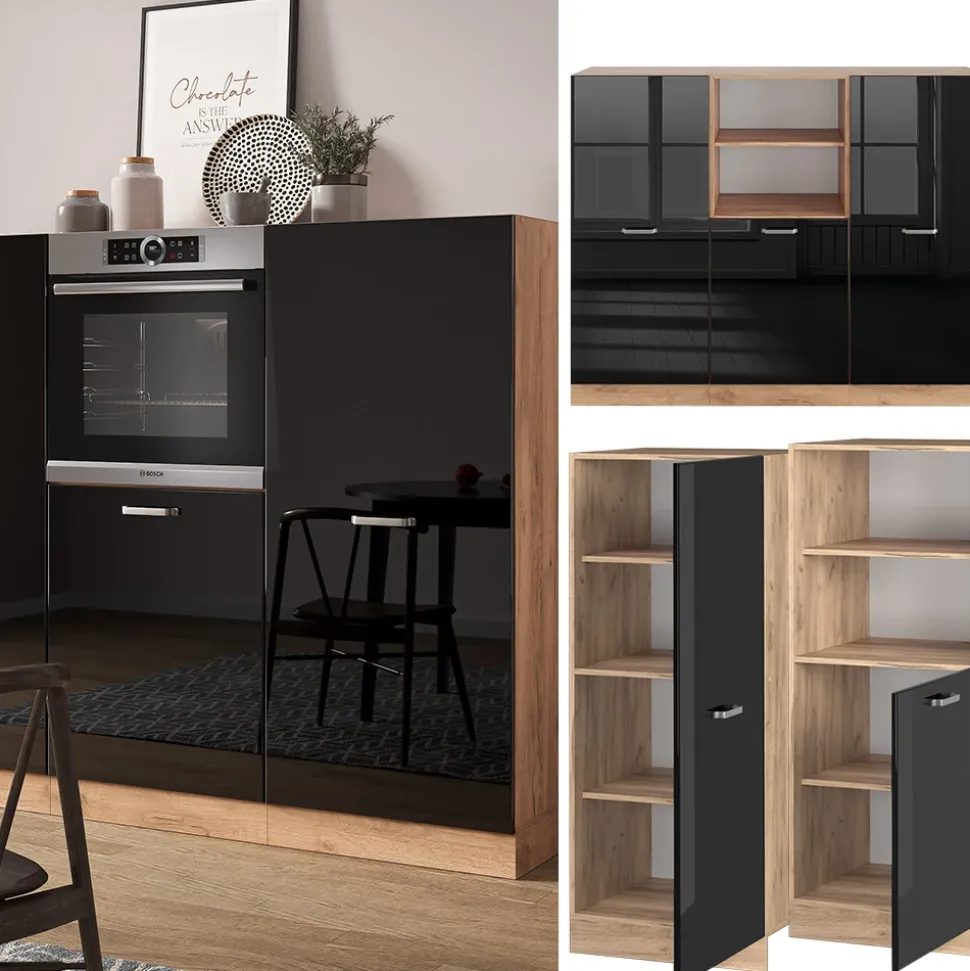 Der R-Line – Küchenblock (ohne Arbeitsplatte) bietet die perfekte Lösung für alle, die ihre Küche optimieren möchten. Die Mini-Küchenzeile ist ein wahrer Alleskönner und kann ganz nach den individuellen Wünschen konfiguriert werden. Egal, ob Sie viel Stauraum benötigen oder eine spezielle Anordnung von Schränken wünschen – mit dieser Einbauküche ist alles möglich. Zusätzliche Module können jederzeit hinzugefügt werden, um die ideale Konfiguration zu schaffen. Dank der höhenverstellbaren Füße kann die Mini-Küche perfekt an Ihre Bedürfnisse angepasst werden. Nicht nur das Design, sondern auch die Funktionalität wird Sie begeistern. Mit dem R-Line – Küchenblock schaffen Sie eine Komplettlösung für Ihre Küche, die Ihnen bestimmt lange Freude bereiten wird. Gönnen Sie sich diese innovative Küche und lassen Sie sich von ihrer Vielseitigkeit überzeugen!