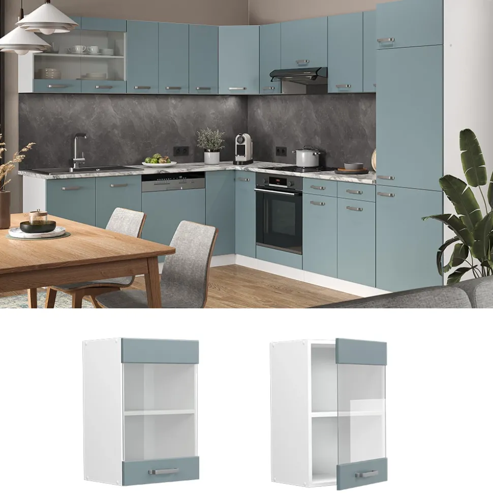 Der Glashängeschrank aus der R-Line – Serie ist die perfekte Lösung für alle, die ihre Küche mit funktionalen und zugleich ästhetisch ansprechenden Möbeln ausstatten möchten. Mit dieser Hängevitrine werden Sie Ihre Küchenutensilien sicher und stilvoll aufbewahren. Die R-Line – Serie ist in verschiedenen Farben und Konfigurationen erhältlich und kann nach Belieben umgestaltet werden. Zusätzliche Module können problemlos hinzugefügt werden. Der hängende Geschirrschrank ist die Komplettlösung für alle Küchen – funktional, attraktiv und vielseitig einsetzbar. Geben Sie Ihrer Küche den Glanz und die Eleganz, die sie verdient. Gönnen Sie sich den Küchenglasschrank und genießen Sie das Gefühl, in Ihrer Küche rundum glücklich zu sein.