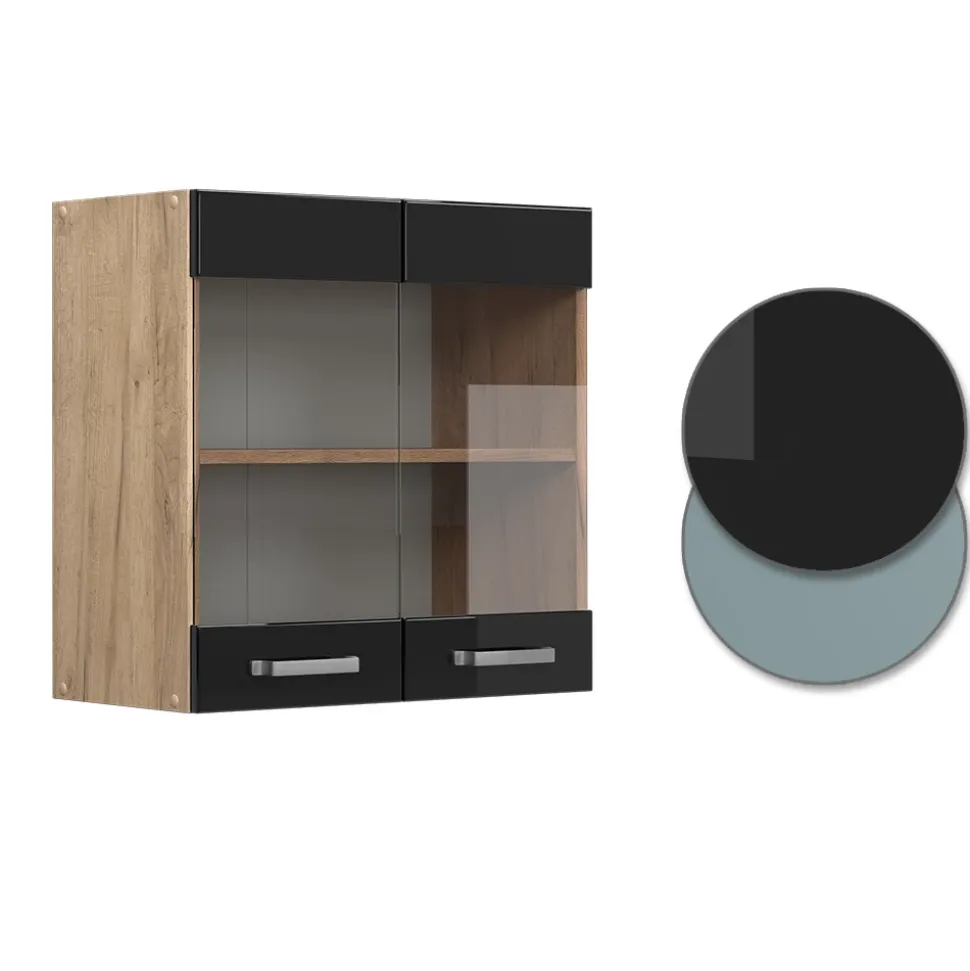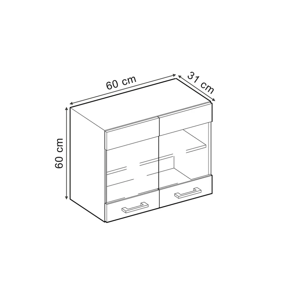 - Der Küchenglasschrank verfügt über 2 Glastüren und einen Einlegeboden. Er bietet so genügend Stauraum für Geschirr und Gläser.