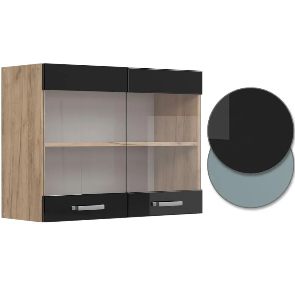 - Der Küchenglasschrank bietet Platz für Geschirr und Gläser. Mit 2 Glastüren und einem Einlegeboden schützt er das Geschirr vor Staub und Schmutz.
