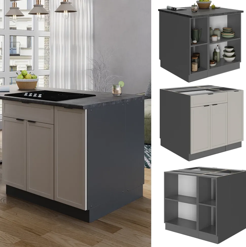 - Die Kochinsel für die Küche bietet zusätzliche Module, die nach Belieben umgestellt werden können. Die MDF-Fronten verleihen dem Produkt ein modernes und stilvolles Design.