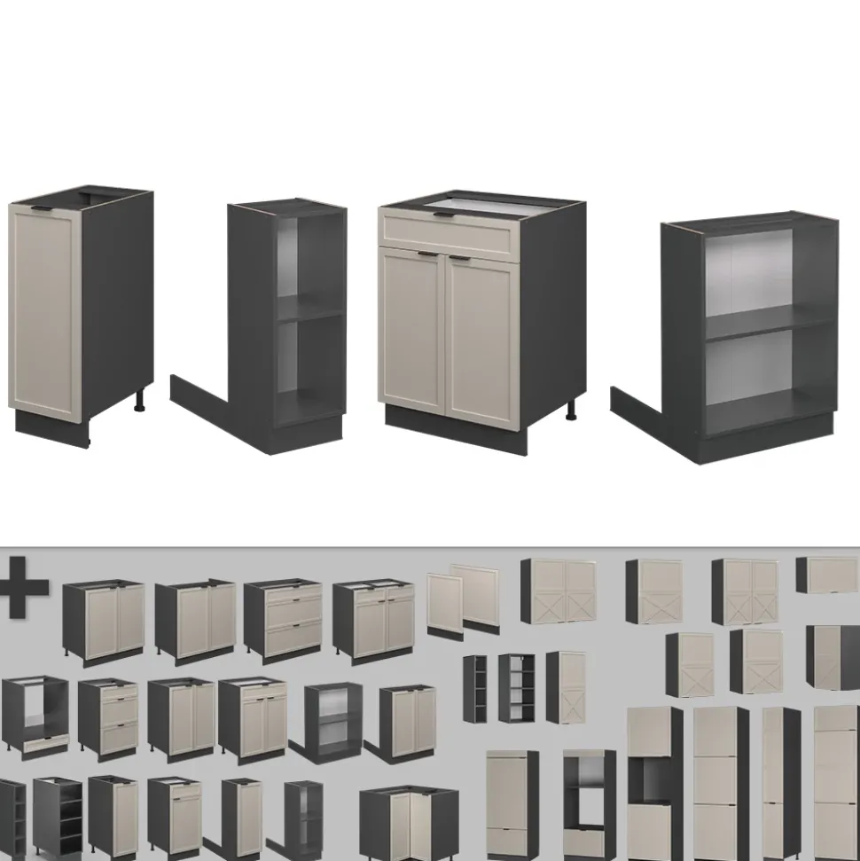 - Fame-Line Küchenschränke bieten Premium-Qualität mit stabilen Metallgriffen, praktischen Soft-Closing-Scharnieren und Metall-Vollauszügen zu fairen Preisen.