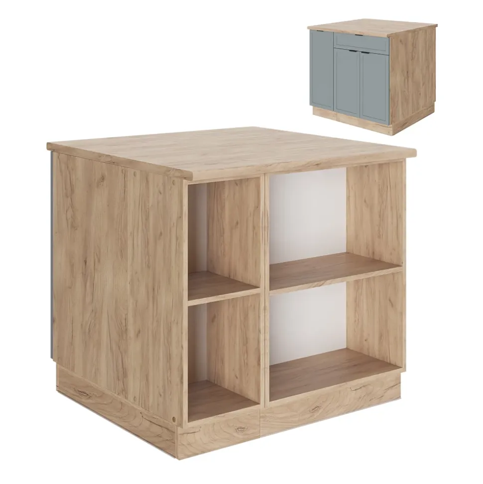 - MAßE: Der Insel-Küchenschrank hat eine Breite von 90 cm, eine Höhe von 82 cm und eine Tiefe von 82 cm. Alle detaillierten Größen sind auf den Fotos angegeben.