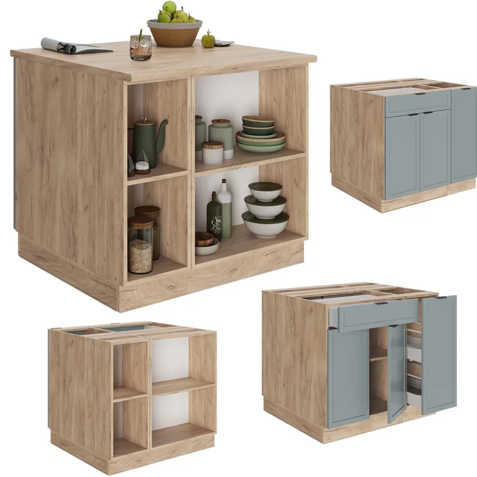 - Die Kochinsel für die Küche bietet die Flexibilität, zusätzliche Module zu erwerben und das Layout der Module nach Belieben anzupassen. Die Fronten bestehen aus MDF.