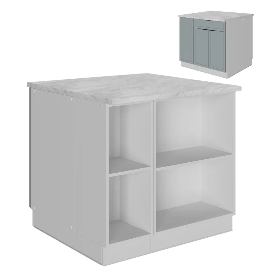 - MAßE: Der Insel-Küchenschrank hat eine Breite von 90 cm, eine Höhe von 82 cm und eine Tiefe von 82 cm. Alle detaillierten Größen sind auf den Fotos angegeben.