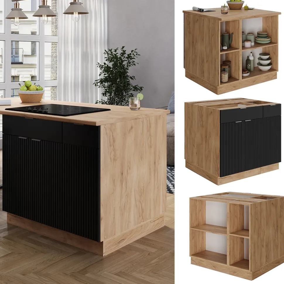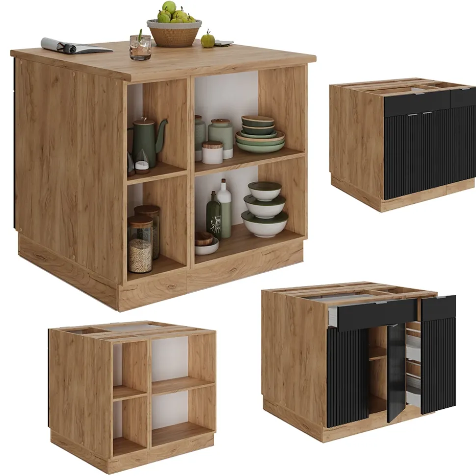 - MAßE: Der Insel-Küchenschrank hat eine Breite von 90 cm, eine Höhe von 82 cm und eine Tiefe von 82 cm. Alle detaillierten Größen sind auf den Fotos angegeben.