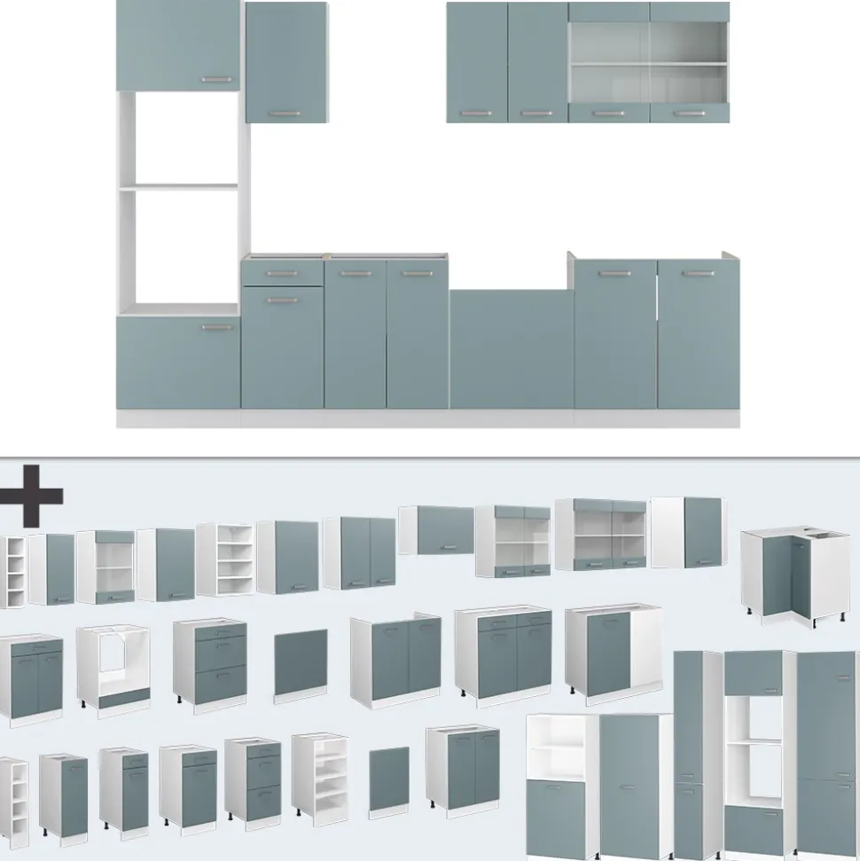 Die R-Line – Küchenzeile ist die ideale Lösung für jeden Haushalt. Der Küchenblock bietet ausreichend Stauraum und ist in verschiedenen Konfigurationen erhältlich. Die Module sind beliebig umstellbar, um den individuellen Bedürfnissen gerecht werden zu können. Zusätzliche Module können jederzeit bezogen werden, um die Küche zu erweitern. Die höhenverstellbaren Füße sorgen für die perfekte Anpassung an die Gegebenheiten und somit für eine optimale Arbeitsfläche. Mit dieser Komplettlösung für die Küche wird Kochen und Backen zum wahren Vergnügen!