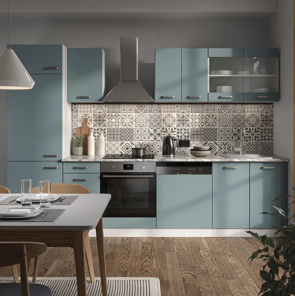 Die R-Line – Küchenzeile ist die ideale Lösung für jeden Haushalt. Der Küchenblock bietet ausreichend Stauraum und ist in verschiedenen Konfigurationen erhältlich. Die Module sind beliebig umstellbar, um den individuellen Bedürfnissen gerecht werden zu können. Zusätzliche Module können jederzeit bezogen werden, um die Küche zu erweitern. Die höhenverstellbaren Füße sorgen für die perfekte Anpassung an die Gegebenheiten und somit für eine optimale Arbeitsfläche. Mit dieser Komplettlösung für die Küche wird Kochen und Backen zum wahren Vergnügen!