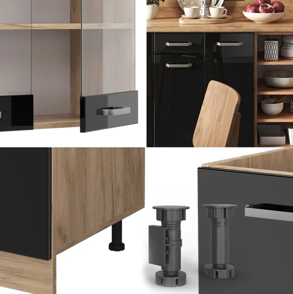 Die R-Line – Küchenzeile ist der Inbegriff einer Komplettlösung für Ihre Küche. Mit diesem Küchenblock erhalten Sie Küchenmöbel, Einbauküche und Komplettküche in einem, alles zu einem unschlagbaren Preis-Leistungs-Verhältnis. Der Clou: Sie können die Module nach Belieben umstellen und so Ihre Küche individuell gestalten! Zusätzliche Module können ebenfalls bezogen werden, damit Ihre Küche für Ihre Bedürfnisse perfekt ausgestattet ist. Die höhenverstellbaren Füße machen den Aufbau und die Ausrichtung kinderleicht und sorgen dafür, dass die Küchenzeile auch auf unebenen Böden stabil steht. Werten Sie Ihre Küche auf und genießen Sie das Kochen und Essen in dieser perfekten Komplettlösung, die Ihnen Zeit und Nerven spart!