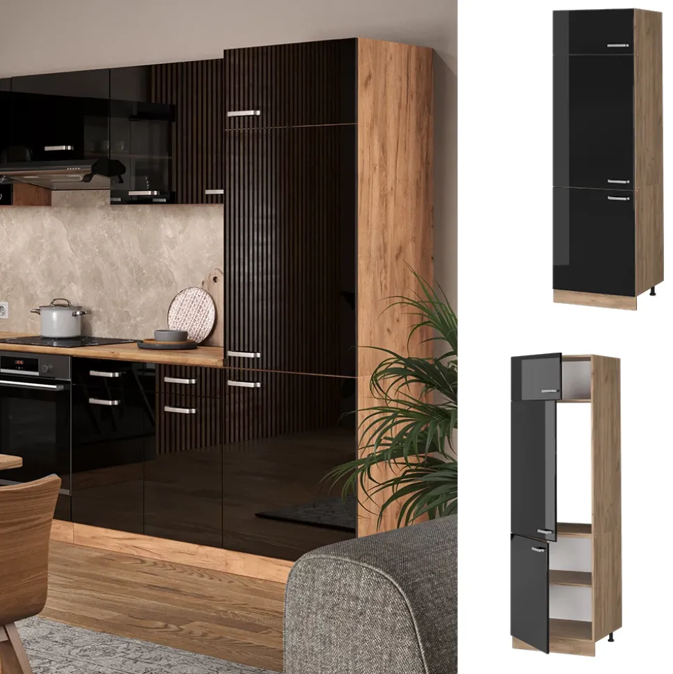 - MAßE: Der Küchenschrank für den Kühlschrank hat eine Breite von 60 cm, eine Höhe von 207 cm und eine Tiefe von 57,2 cm. Alle detaillierten Größen sind auf den Fotos angegeben