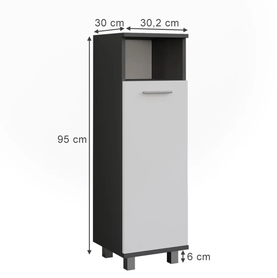 - MAßE: Das Badezimmermöbel hat 1 Tür. Die Maße: Breite 30,2 cm, Höhe 95 cm, Tiefe 30 cm.
