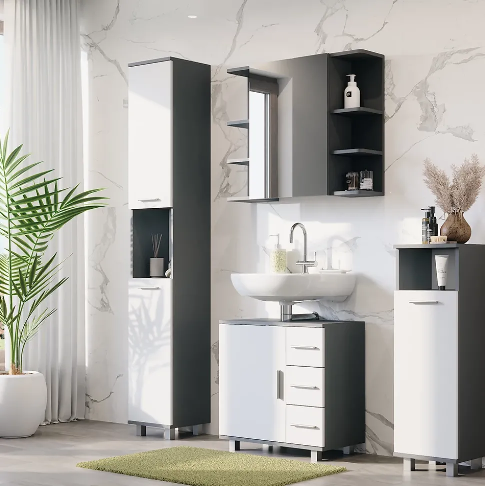 - Der Badezimmerschrank „Ilias“ ist eine hervorragende Wahl für jede Wohnung. Mit seinem durchdachten Design und stilvollen Aussehen ist er ein echtes Must-have für Ihr Zuhause.
