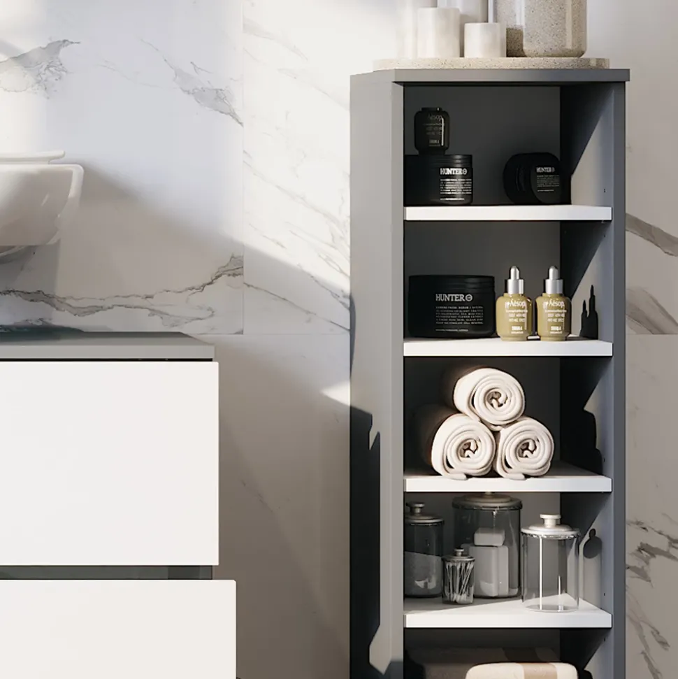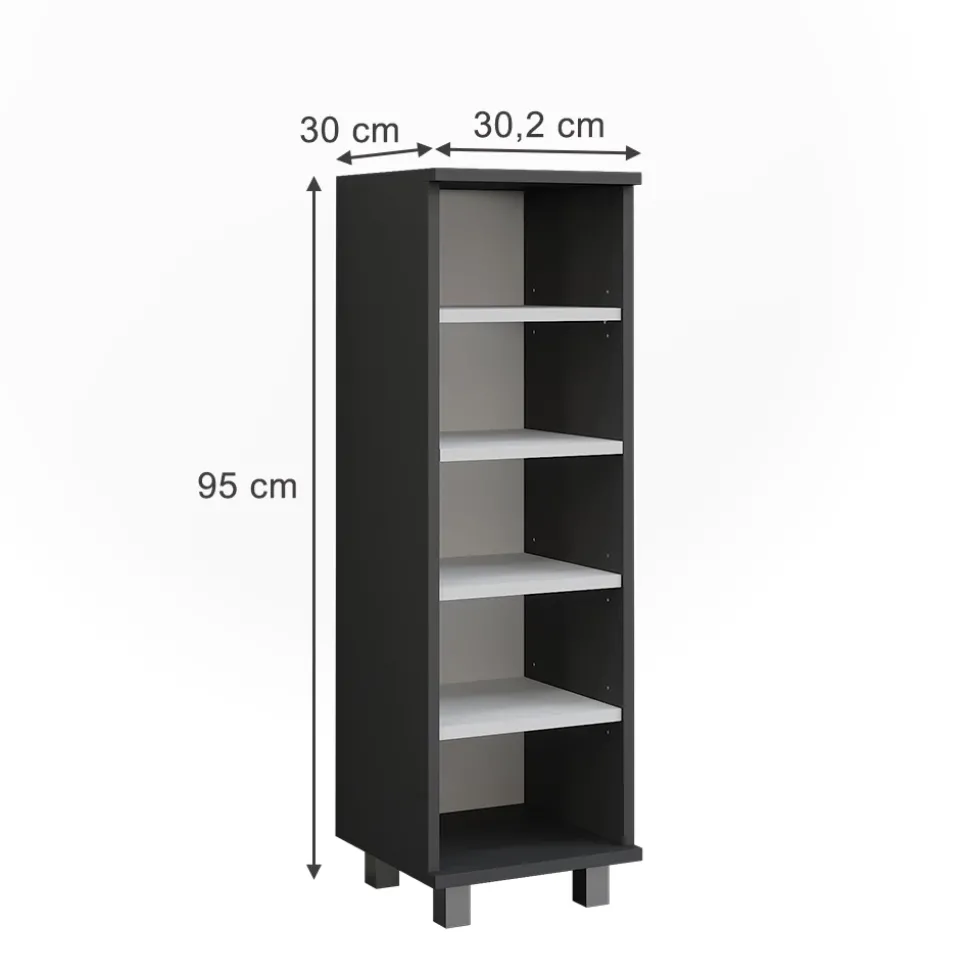 - MAßE: Die Badezimmermöbel verfügt über 5 offene Fächer. Die Maße: Breite 30,2 cm, Höhe 95 cm, Tiefe 30 cm.
